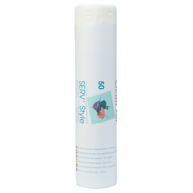 The Sibel Serv' Style is a roll of disposable paint protection cloths. The cloths are double-padded, protecting clothing. Because the cloths are plasticized for four-fifths of their length, they provide extra comfort for the client. Ideal for use in the hair salon or as a mobile hairdresser at your clients' homes.