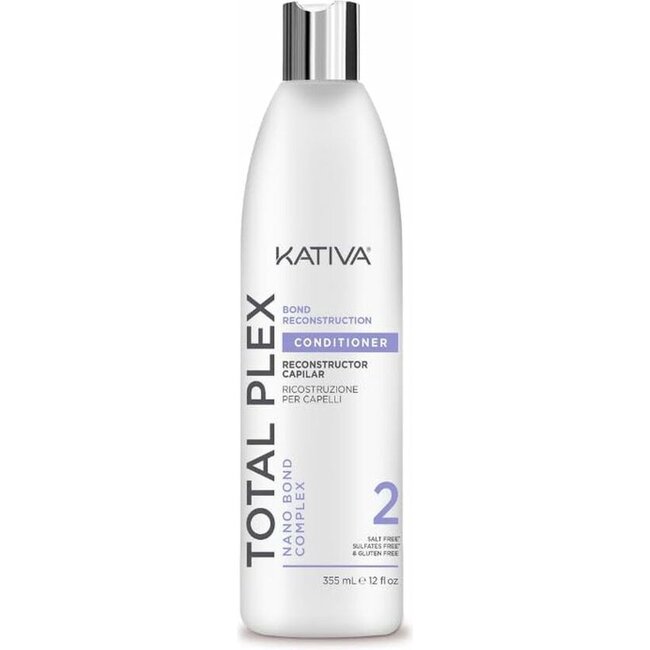 Kativa Total Plex Bond Reconstruction Conditioner 355ml biedt geavanceerde haarreparatie, revitaliseert de haarstructuur en maakt je haar sterker en weerbaarder.