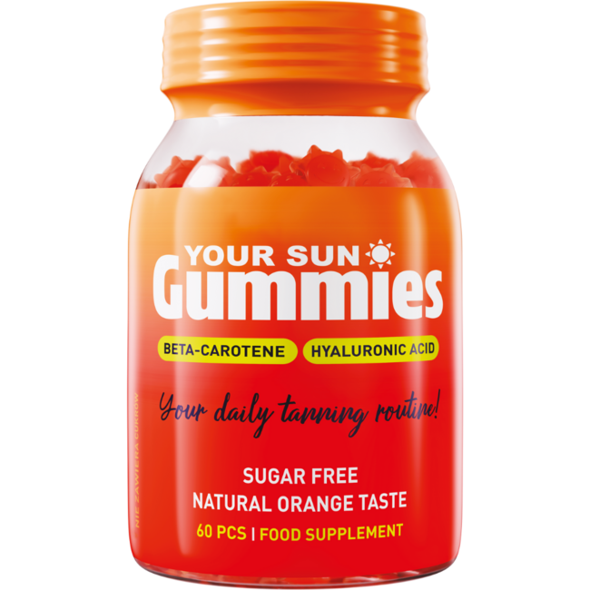 Uw Sun Gummies zijn heerlijke supplementen met sinaasappelsmaak, ontworpen om een gezonde, stralende huid te ondersteunen. Dankzij de suikervrije formule zijn ze licht, handig en de perfecte aanvulling op uw zelfbruiningsroutine – ze helpen uw huid stralend, glad en gelijkmatig gebruind te blijven.
